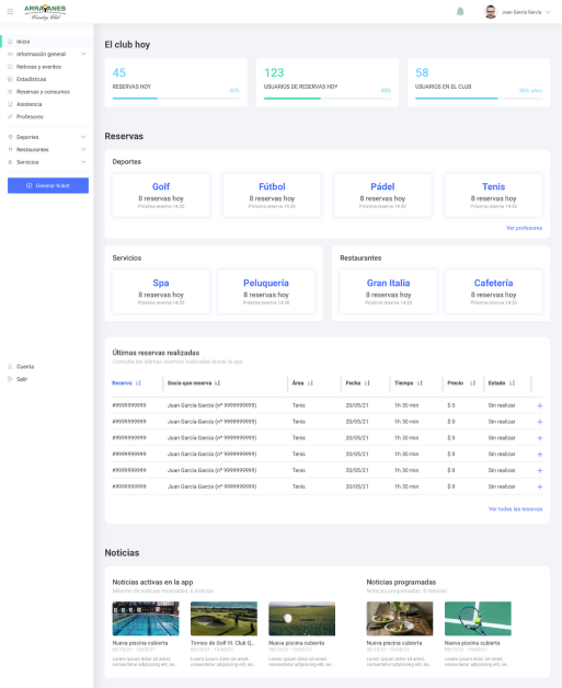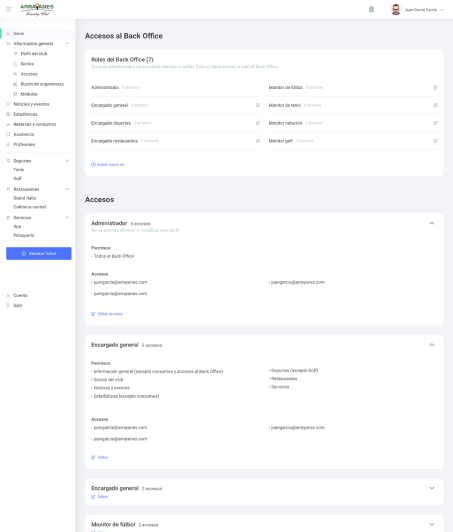 Back office for club managers